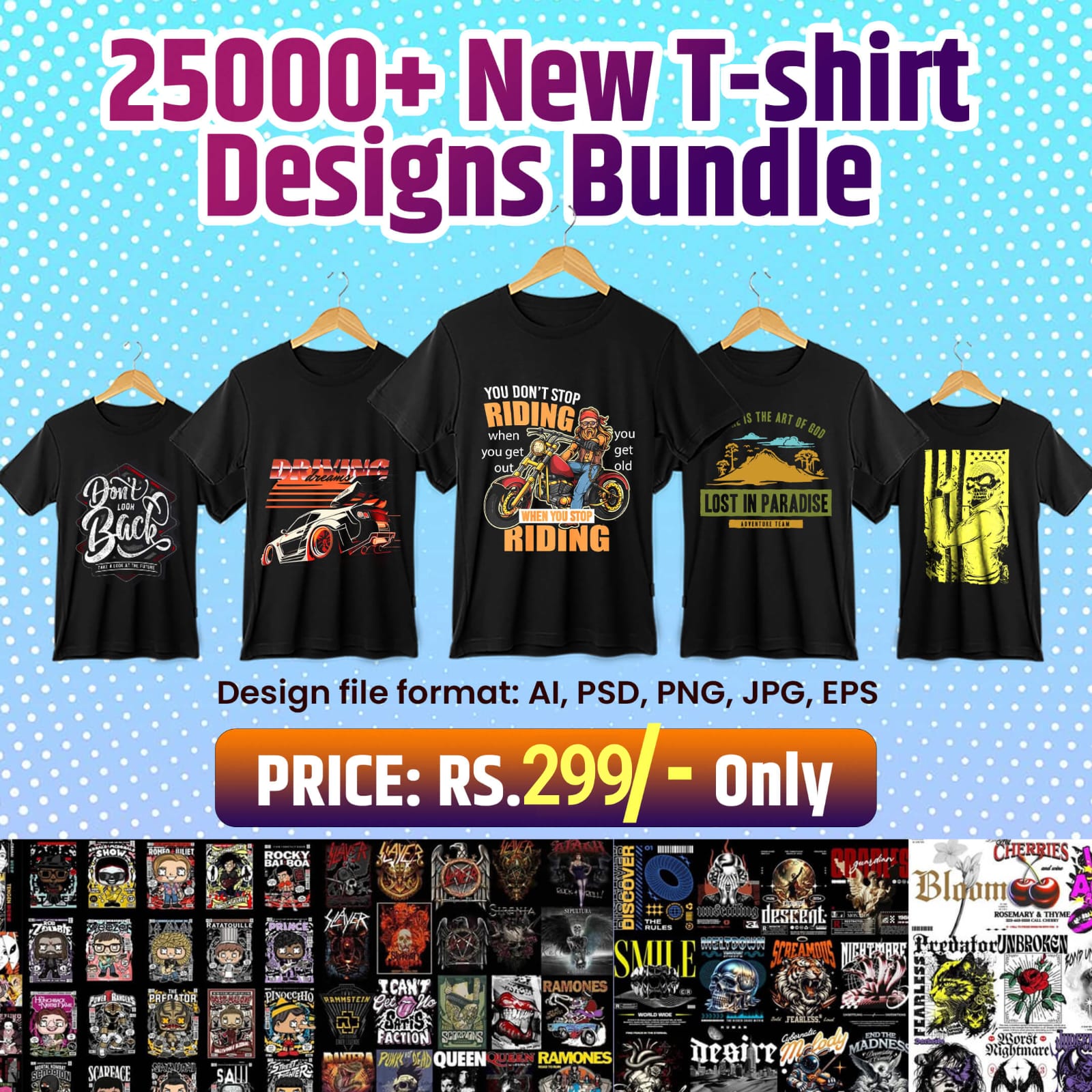 Our Premium Pack is specially for t-shirt printing business who wants new designs for boosting thier business and also for anyone who wants to start a Print-On-Demand business and whoever wants to create original designs in minutes on a t-shirt or any merchandising item.